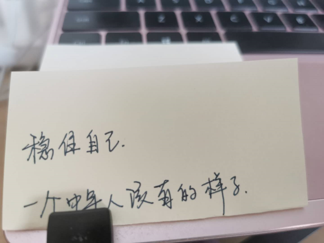 這一年來(lái),我最大的變化是在心態(tài)上,有句話我一直貼在書桌上:穩(wěn)住自己,一個(gè)中年人該有的樣子。穩(wěn)住,指的是三方面,穩(wěn)定的身體狀態(tài)、穩(wěn)定的心理狀態(tài)、穩(wěn)定的大腦狀態(tài),穩(wěn)定說(shuō)起來(lái)容易,但做起來(lái)超級(jí)難。