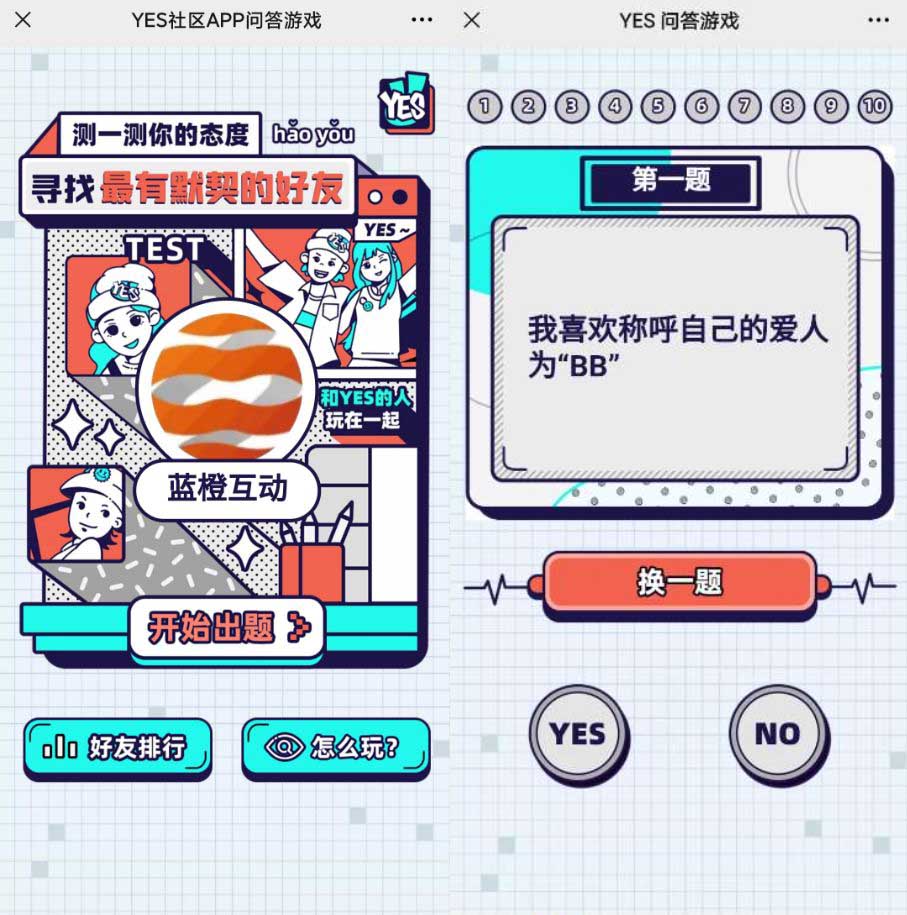 案例參考:這是由YES社區(qū)推出的好友助力答題H5游戲,H5分為兩個部分進行,第一部分是用戶自己在H5中設(shè)置問題,讓后分享給好友;第二部分則是好友受到邀請后參與答題,然后測試出用戶與其好友的默契程度。用戶可分享給多名好友,并生成默契度排行榜,從而促進用戶分享邀請更多好友參與活動。
