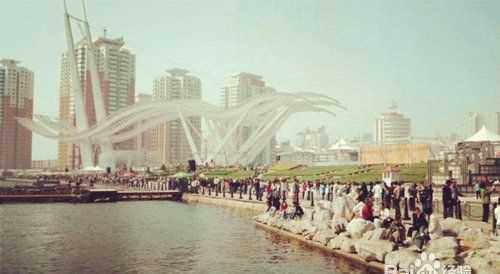 游世界上第一個建由工業(yè)廢水山公園”紫云園“,在唐山地震遺址景觀。然后,去到東江港感覺“碧海金沙”。