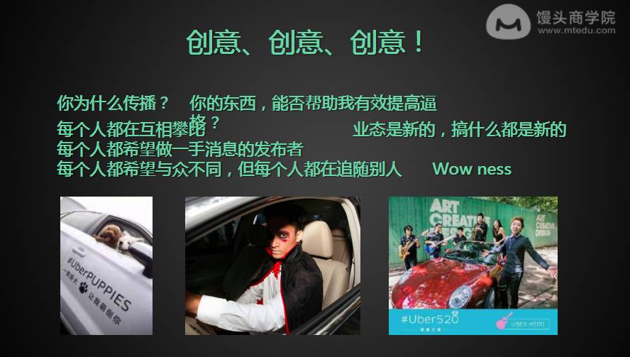 活動(dòng)中,還有很重要一件事情就是創(chuàng)意。用戶為什么會(huì)去傳播你的活動(dòng)?他有什么理由幫你去轉(zhuǎn)發(fā)?最重要的是這個(gè)活動(dòng)能不能幫助他們提升逼格。