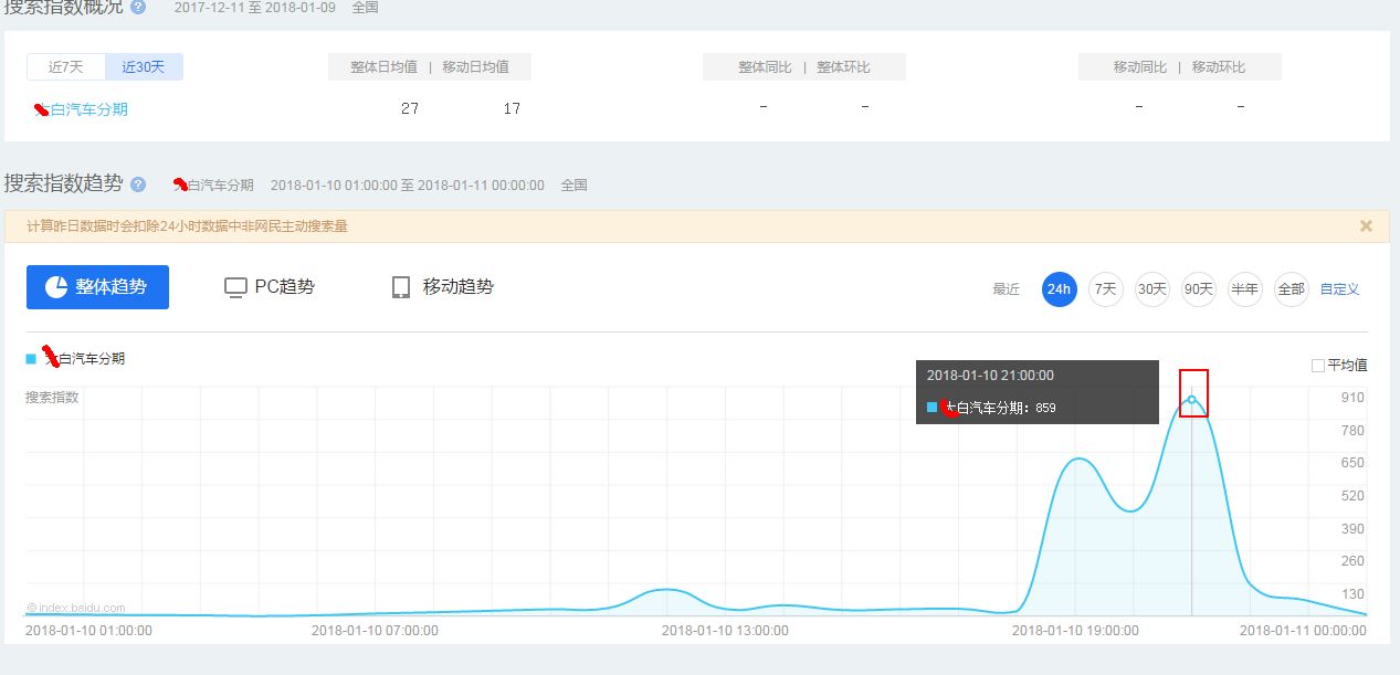 比較一個30天/7天/24小時的數(shù)據(jù);很明顯,在當晚9點,公布說下載應(yīng)用可以獲得答案的時候,是當晚的最高峰。