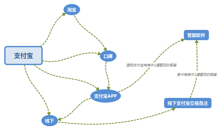 又比方說線下用支付寶交易,同樣可以獲得其中1道題目的答案。