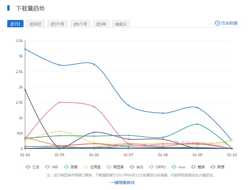 但是紙面上的數(shù)據(jù)挺好看,但是在應(yīng)用下載的監(jiān)控,似乎沒有指數(shù)的那樣火爆: