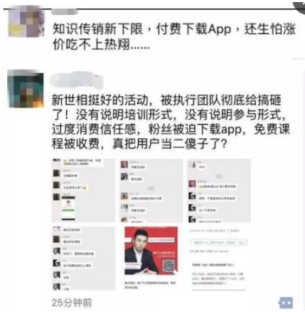 但在一早上的流量爆炸后,卻迎來了退款的高潮,有人說這是場朋友圈“割韭菜”活動,有人說新世相的營銷課“吃相很難看,有人嘲諷說為了拿點提成就把自己朋友圈貢獻出來,實在是節(jié)操掉了一地。甚至有人說新世相這場營銷活動終將改變知識付費的方式。