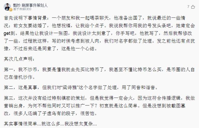雖然剛開始被認定為是幣圈的一場營銷,但隨后就被活動策劃人甄妙辟謠說這是一場沒有精心策劃的真實故事。