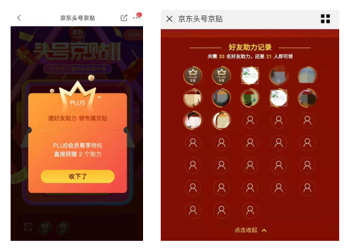 另外,頭號(hào)京貼也屬于社交活動(dòng),用戶需邀請(qǐng)一定數(shù)量的好友助力即可領(lǐng)取京貼。
