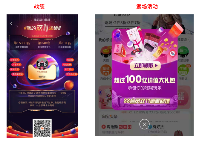 對(duì)內(nèi)總結(jié)復(fù)盤,對(duì)外宣布此次活動(dòng)圓滿結(jié)束,包裝活動(dòng)的亮點(diǎn)、爆點(diǎn),做一次漂亮的公關(guān)。雙十一剛過(guò),淘寶給我發(fā)了這樣一份戰(zhàn)報(bào),還有類似于會(huì)員返場(chǎng)的活動(dòng),有趣又有料,如下圖所示。