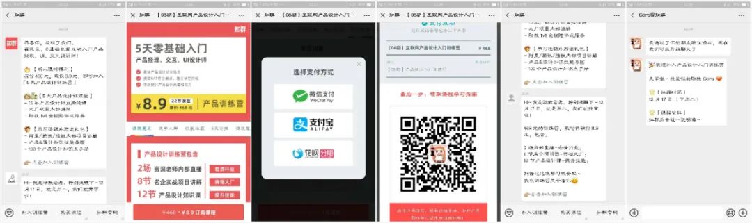 本案例的用戶購買流程比較簡單,進(jìn)入公眾號菜單欄(或關(guān)注消息)到達(dá)課程詳情頁即可購買,不需要其他的復(fù)雜操作,對用戶比較友好。流程越少,越能減少每個漏斗層級的流失,從而提升整體的轉(zhuǎn)化率。
