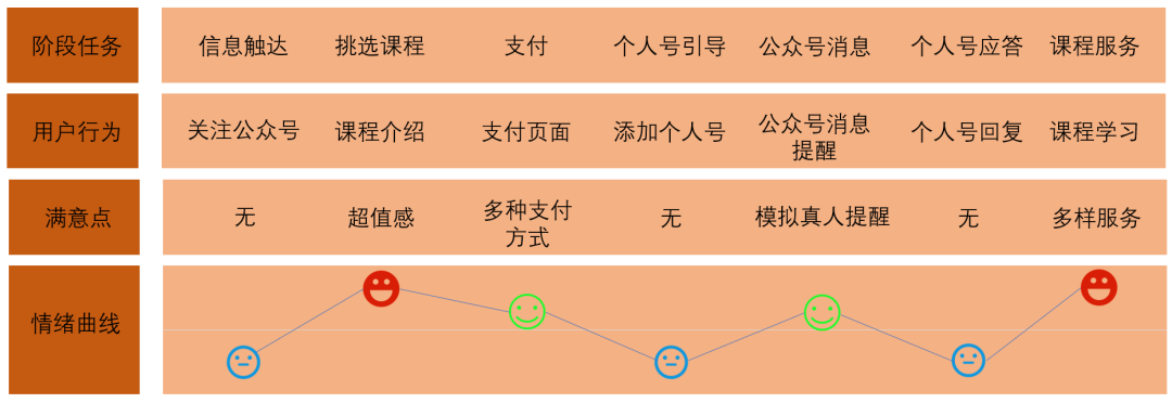 用戶體驗地圖是定位和描述一項完整服務(wù)過程中,每個階段的服務(wù)體驗情況,并利用圖形化方式記錄/整理/表現(xiàn),了解每個環(huán)節(jié)用戶的行為、判斷用戶情緒,從而找到流程中用戶的爽點(diǎn)和痛點(diǎn),打造更完美的用戶體驗。