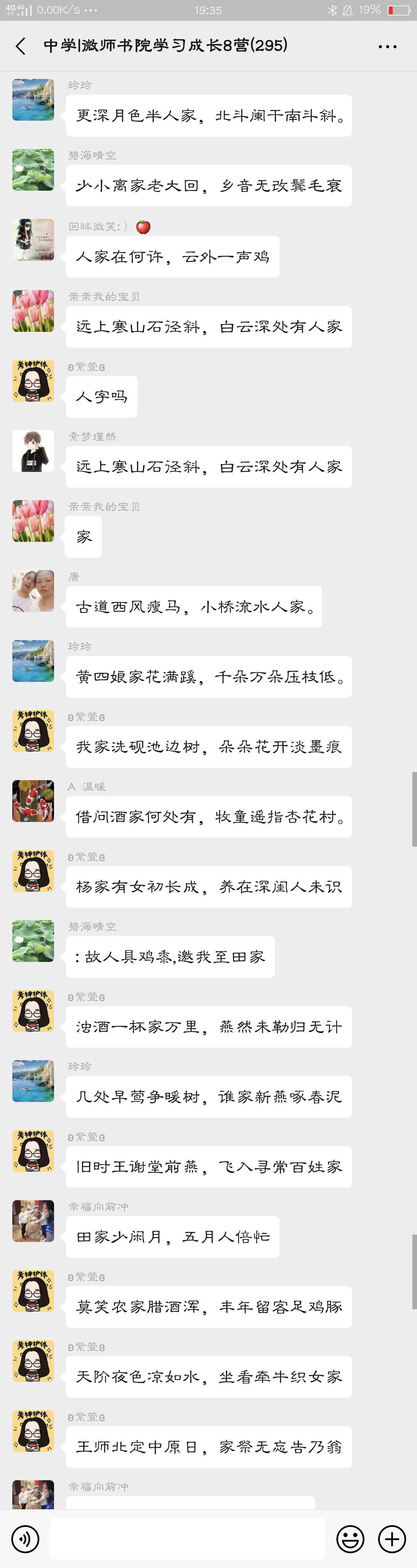 此外,群內(nèi)會有每日游戲如飛花令(其他的暫時不知道,今天的是這個),群內(nèi)成員參加的非常積極。
