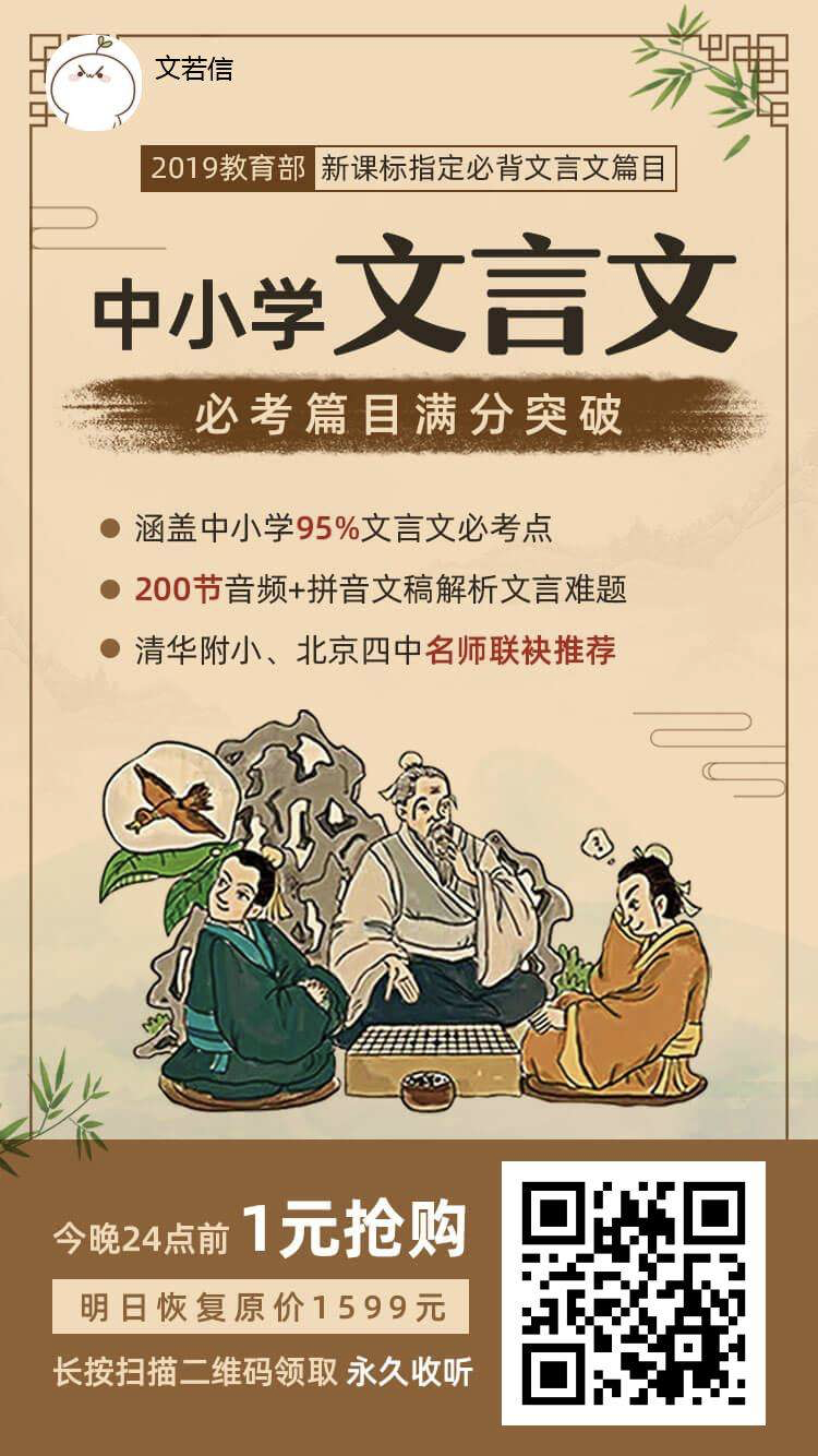 海報重點突出:標題即點明活動為中小學文言文,而在教育改革背景下,文言文/古詩詞的考試比例大幅提升,也刺激家長對這塊更加上心,比較容易參加活動。