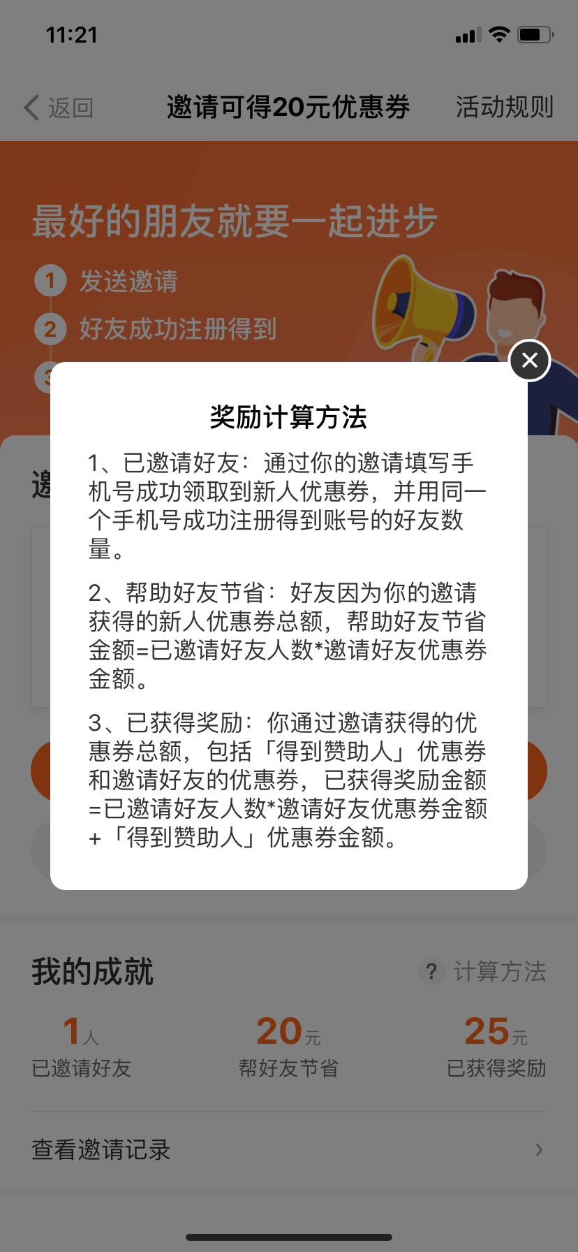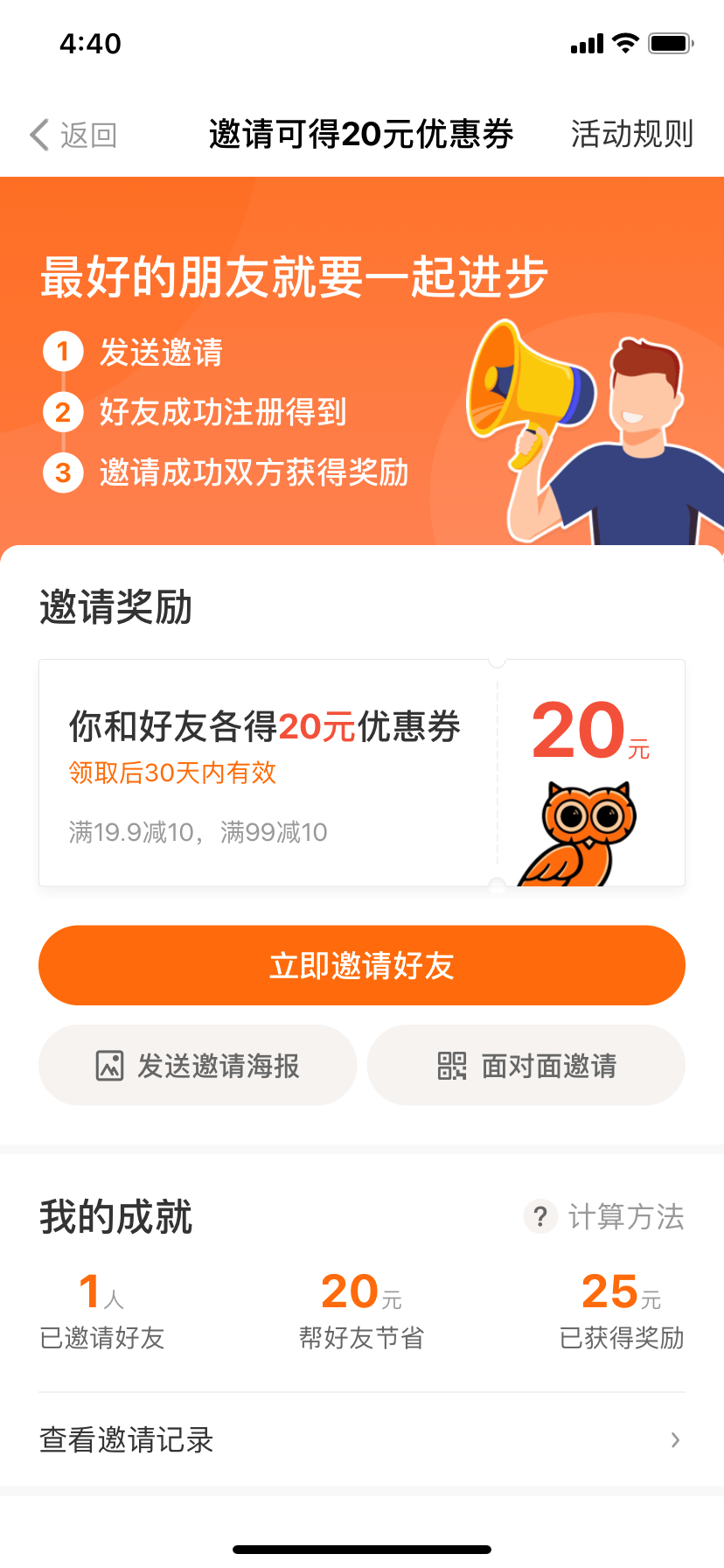 邀請獎勵:你和好友各得20元優(yōu)惠券