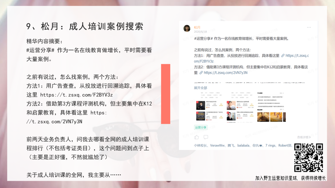 只看1個(gè)案例不過癮?歡迎加入野生運(yùn)營星球,有不定期快閃分享、教育圈一手資料、1V1答疑……等硬核干貨,而且還能一次入手共計(jì) 1414 個(gè)增長案例拆解,就問你句,值不值?加入星球請(qǐng)先看置頂文件,其中在線教育圈最全運(yùn)營資料合集包括1414個(gè)在線教育圈案例合集全庫、下沉市場觀察合集、23 場群分享的音頻+逐字稿~