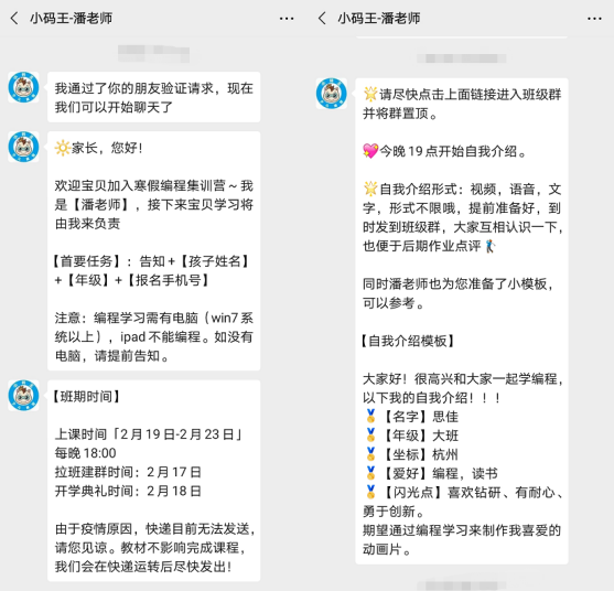 (2)添加班主任微信后,會(huì)進(jìn)行用戶信息的收集和課程時(shí)間的預(yù)告。