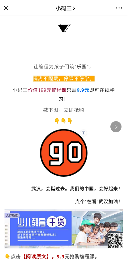 小碼王這次的9.9元課程只借助了自有公眾號和公眾號軟文投放的方式進(jìn)行了推送。