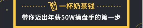 而“帶你邁出年薪50W操盤手的第一步”也表達出,本次課程并不能幫你成為操盤手,而是邁出操盤手的第一步;眾所周知,第一步往往是最難的,所以三節(jié)課抓到的這個小小的概念“第一步”,也是十分的巧妙;同時,“年薪50W操盤手”也正好匹配了足夠精準的目標用戶,方便后續(xù)做高價課的轉(zhuǎn)化;