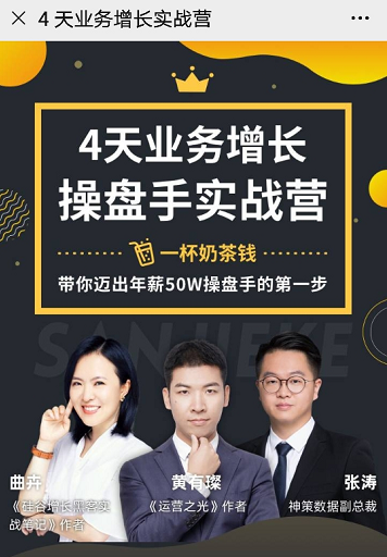 三節(jié)課價值18元的4天業(yè)務(wù)增長操盤手實戰(zhàn)營