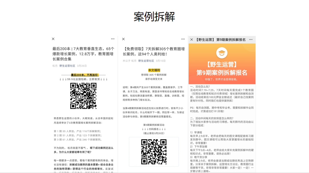 信任背書:通過每日推送優(yōu)質(zhì)拆解案例,展現(xiàn)訓(xùn)練營價值所在,提供信任背書