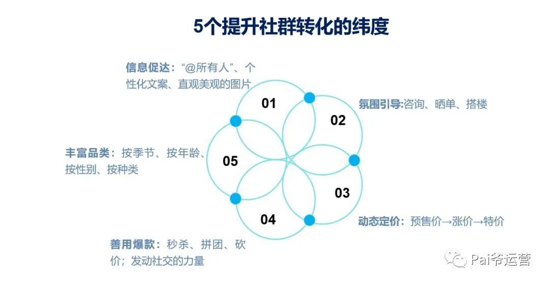 社群轉(zhuǎn)化 我們都知道社群做轉(zhuǎn)化具備著天然的優(yōu)勢,社群商業(yè)化也是未來的趨勢。所以如何把握社群運營節(jié)奏,提升社群轉(zhuǎn)化等問題成為了所有運營人繞不開的問題。π爺就通過5個維度1個理論來講解一下。 5個維度來提升社群轉(zhuǎn)化:
