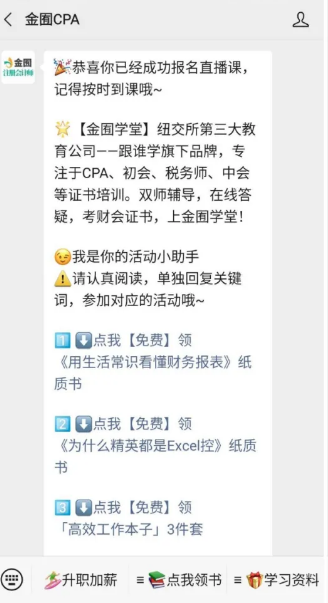 如果一旦關(guān)注,就會彈出消息表示歡迎語,還有金囿學(xué)堂的介紹,以及一個(gè)比較標(biāo)準(zhǔn)化的活動參與,還可以繼續(xù)引導(dǎo)用戶參與其他活動,通過任務(wù)的形式,可以獲得一些“紙質(zhì)”禮物!