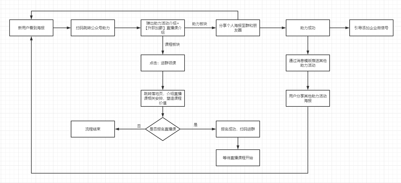 案例目的:利用公眾號的裂變活動獲取新用戶,為免費直播課導流,通過大課進行銷轉變現(xiàn)。