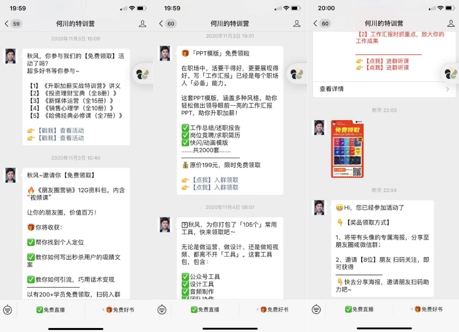 2)、可以利用免費資料引導進群的用戶添加個人號好友,避免報名進群的用戶白白流失。