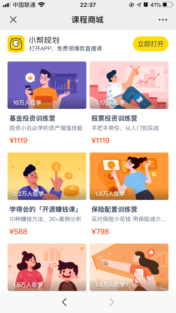 在為中國家庭提高抗風(fēng)險(xiǎn)能力的基礎(chǔ)上,小幫規(guī)劃還通過為用戶提供關(guān)于理財(cái)、基金等財(cái)商課程,幫助中國家庭更好的管理自己的家庭資產(chǎn)。 截止2019年,小幫規(guī)劃關(guān)于財(cái)商的課程全網(wǎng)曝光量已經(jīng)超過1億次。