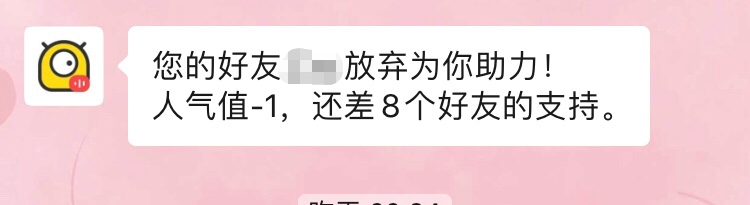 用戶邀請的進(jìn)度提醒和文案展示,助力或取消助力都會(huì)發(fā)消息告知。讓用戶有掌控感。