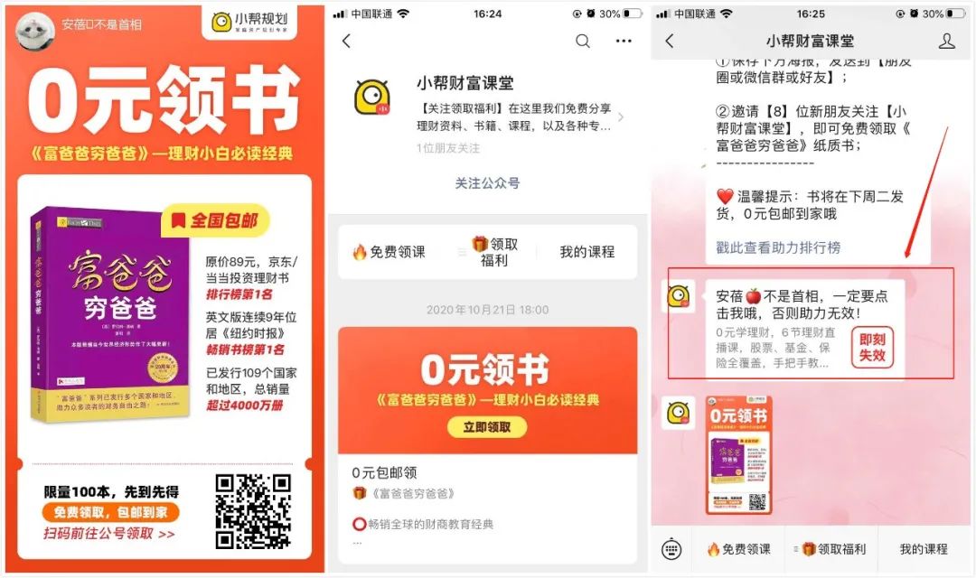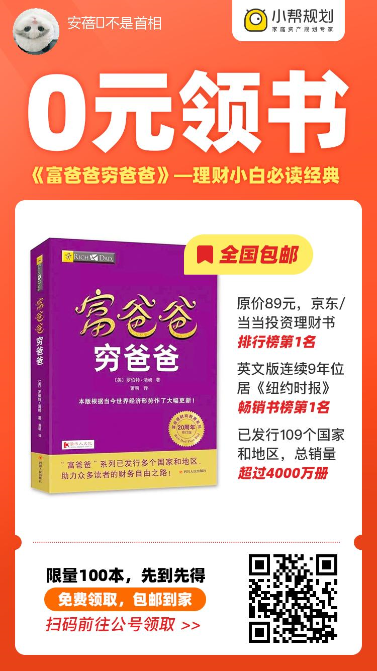 物質(zhì)層面:邀請【8】位新朋友關(guān)注,即可免費(fèi)領(lǐng)取原價(jià)89元的《富爸爸窮爸爸》紙質(zhì)書;還能0元包郵到家。