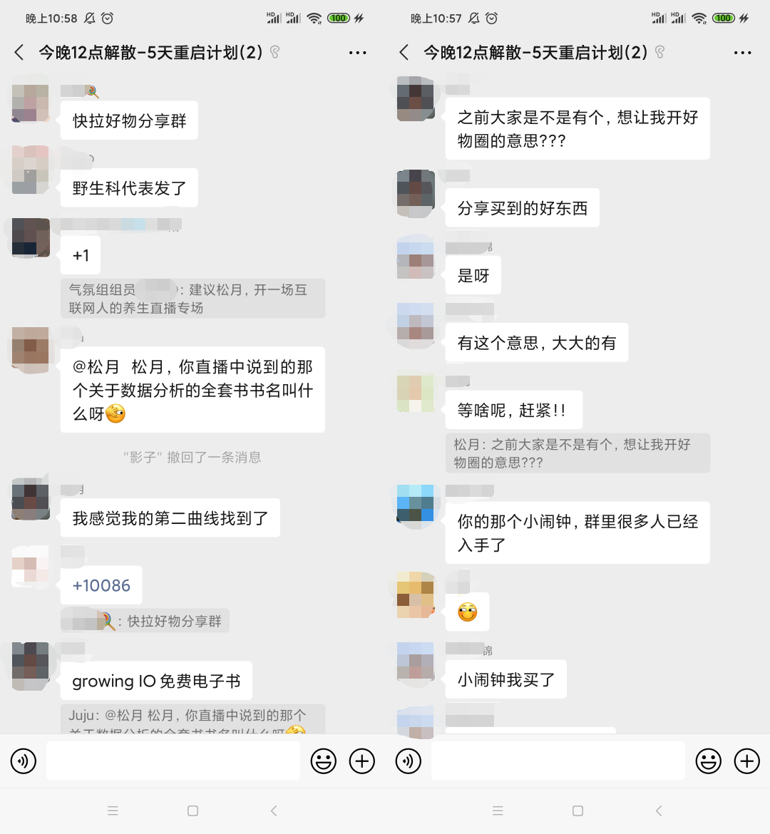 加上兩位主理人的給力,獨(dú)孤菌在外聚餐依然準(zhǔn)時(shí)分享了很久,松月說(shuō)就講十分鐘,但在大家的熱情互動(dòng)下,和大家嗨聊了一個(gè)多小時(shí),還順帶種草安利了超多好物、建起來(lái)了好物分享群,絕對(duì)是參與感爆棚!