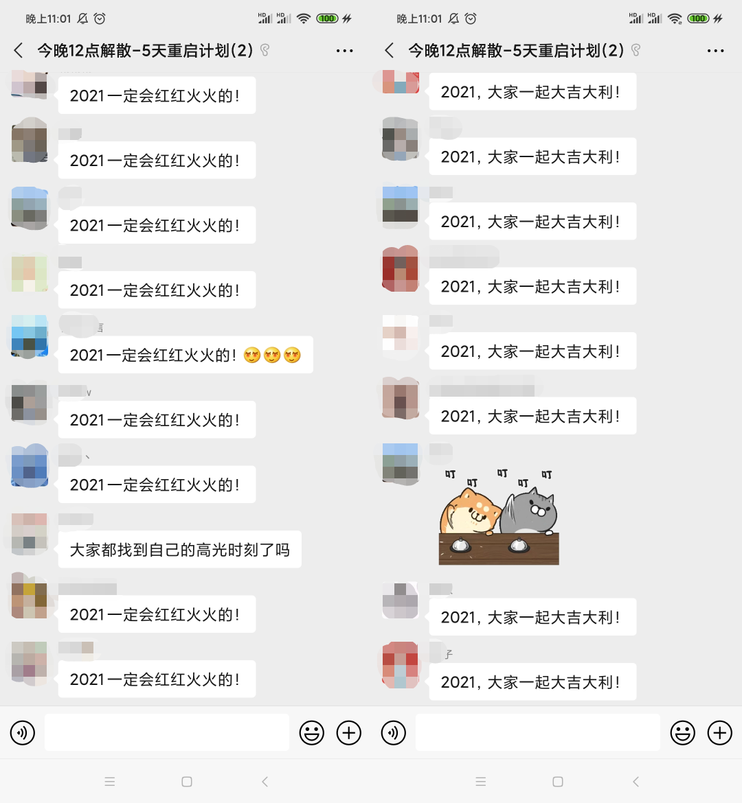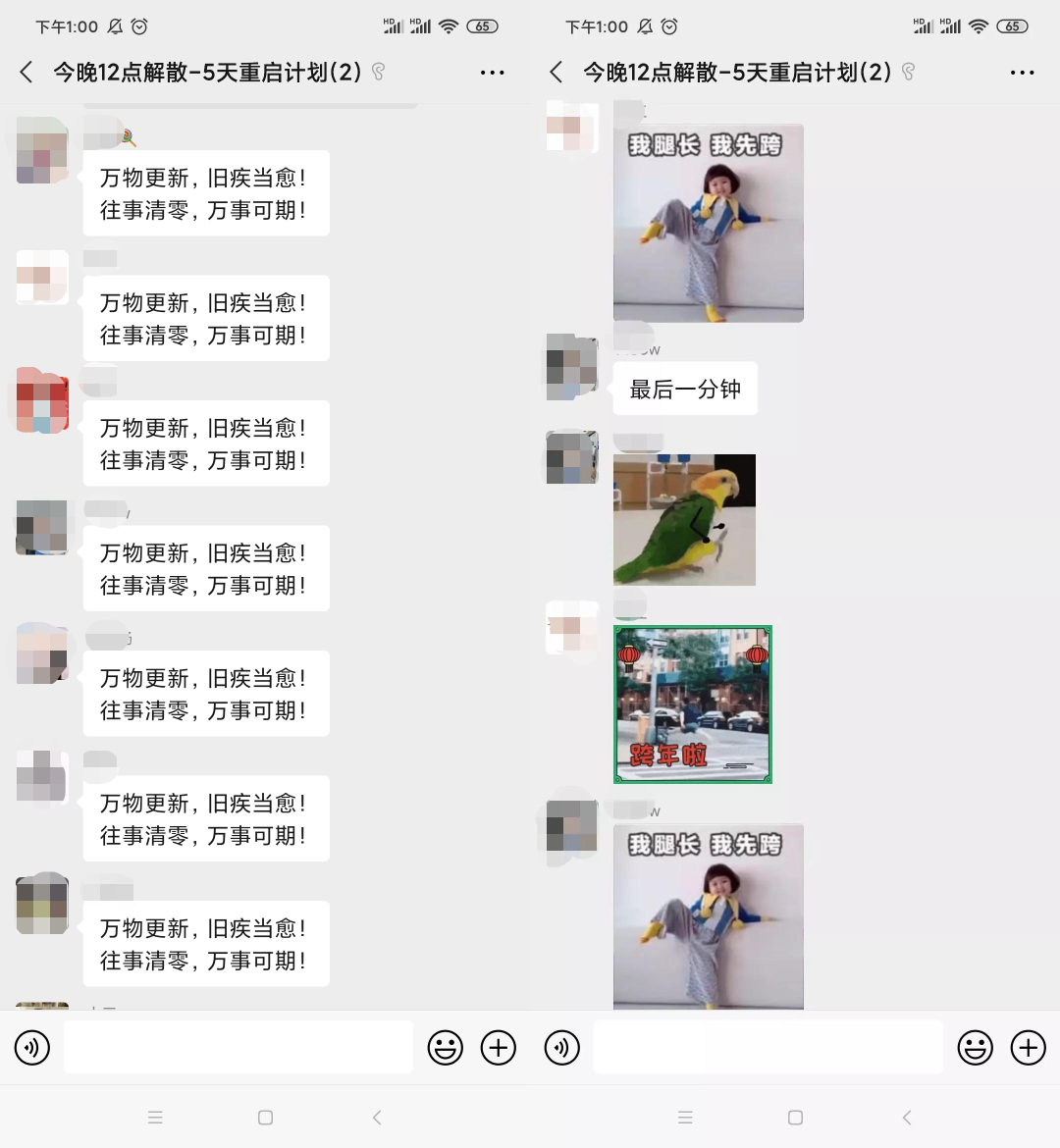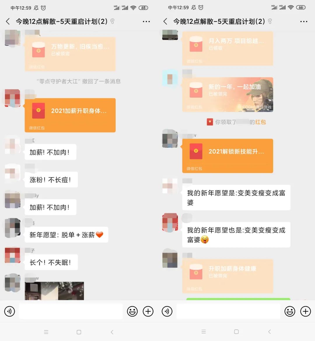 熱烈的期待,變富、變美、變瘦、變優(yōu)秀,彼此祝福全部夢(mèng)想成真。熱鬧的氣氛就一直在群里持續(xù)著,一直到了零點(diǎn)跨年。