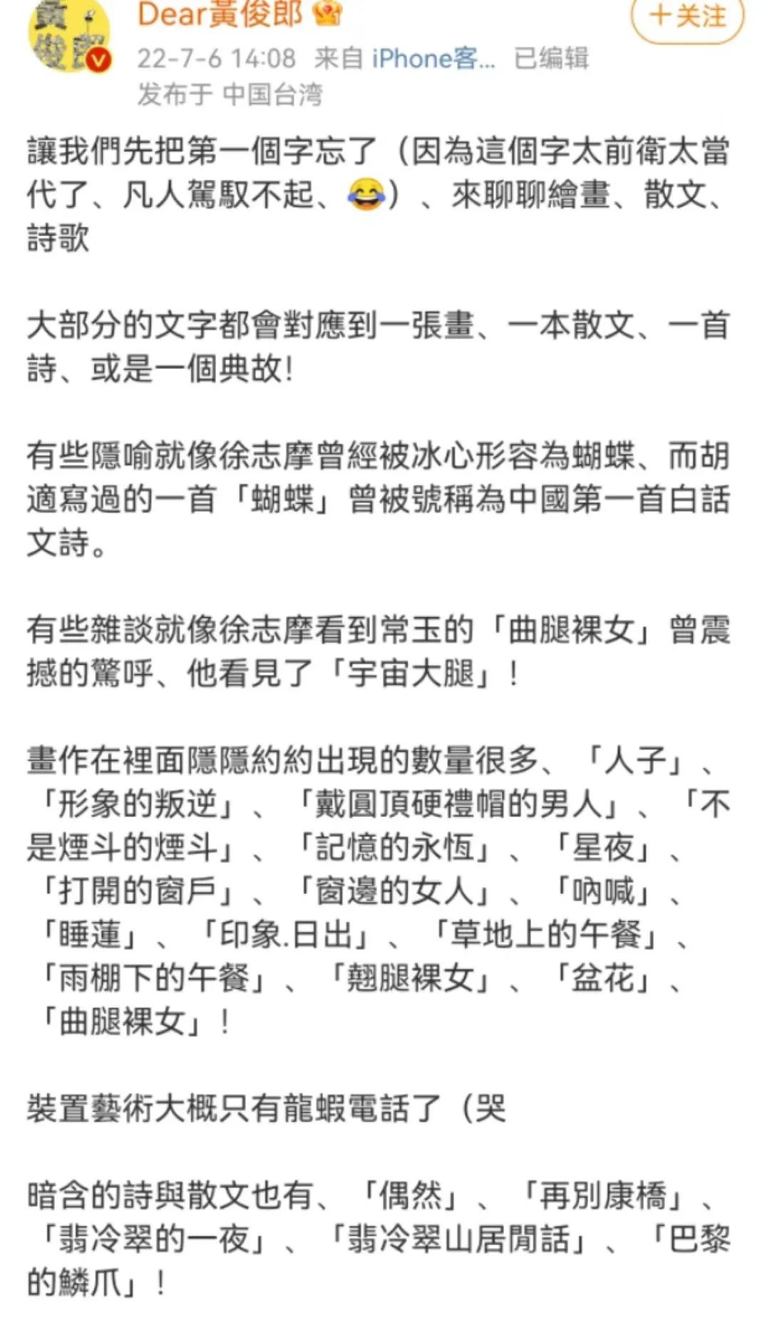 作詞人黃俊郎在微博中為大眾細(xì)心總結(jié)了MV中出現(xiàn)的眾多線索,從鋼琴演奏到藝術(shù)家的“重現(xiàn)”,從《印象·日出》、《星夜》、《草地上的午餐》到《再別康橋》、《翡冷翠的一夜》,歌曲融合了過(guò)往時(shí)代中最偉大的詩(shī)歌、畫作、散文等著作,配以復(fù)雜的編曲和弦,將西方古典藝術(shù)以流行音樂(lè)的口吻表述出來(lái),彰顯出作者強(qiáng)大的音樂(lè)品味。