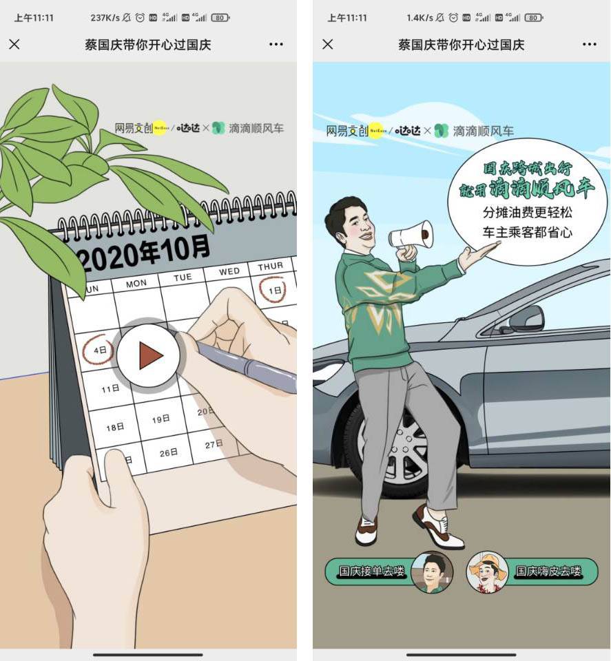 案例參考:這個由滴滴順風車出品的國慶節(jié)H5,就是通過H5視頻漫畫描述了主人公的國慶節(jié)的獨家經(jīng)歷,H5中反饋了 許多現(xiàn)實生活中常見的問題,例如放假回家,一開始父母很開心,過兩天就開始遭遇老爸嫌棄,又或是去景區(qū)度假,結(jié)果人山人海等等,說出了人們的度假心聲。
