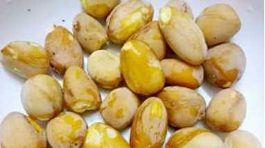 鳳眼果用開水煮熟,剝?nèi)ズ谏耐夥N皮、半透明淡褐色的中種皮后,即可食用。鳳眼果一般可以用來蒸煮、燒烤、紅燒,風(fēng)味與板栗相似,清香可口。