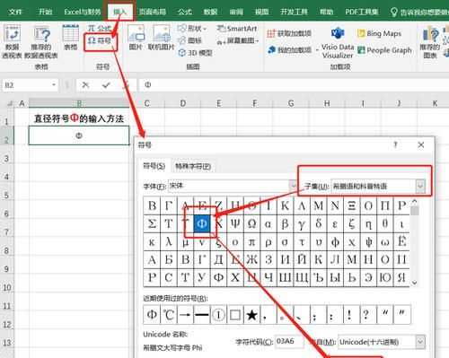 3、如果是在EXCL中輸入直徑符號,可以先打開EXCEL文本,在其工具欄上有一個叫做“插入”的工具,然后在其菜單里打開叫做“符號”選項的,選擇直徑符號即可。