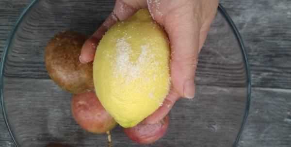 2.檸檬加點(diǎn)鹽搓洗消毒。