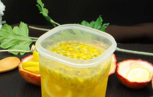 第六步、需要食用時(shí)取出適量的百香果檸檬蜜沖水即可食用。