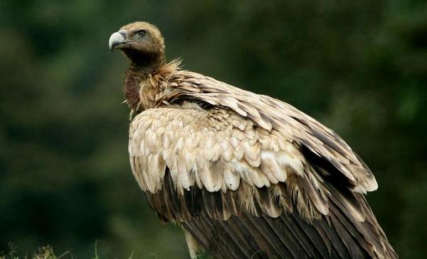 體長1.2-1.5m,重8-12kg。屬大型猛禽,頭和頸上部被有淡黃色針毛,到下頸羽毛逐漸變白和變成絨羽,頸基部有長而呈披針形的簇羽形成領(lǐng)翎圍繞在頸部,淡皮黃色或黃褐色,具有中央白色羽軸紋。背和翅上覆羽淡黃褐色,羽毛中央較褐,形成一些不規(guī)則的褐斑,外側(cè)大覆羽、飛羽和尾羽暗褐色,內(nèi)側(cè)次級(jí)飛羽具淡色尖端。虹膜暗黃色、乳黃色或淡褐色,嘴角綠色或暗黃色,蠟?zāi)さ稚蚓G褐色,趾綠灰色或白色。