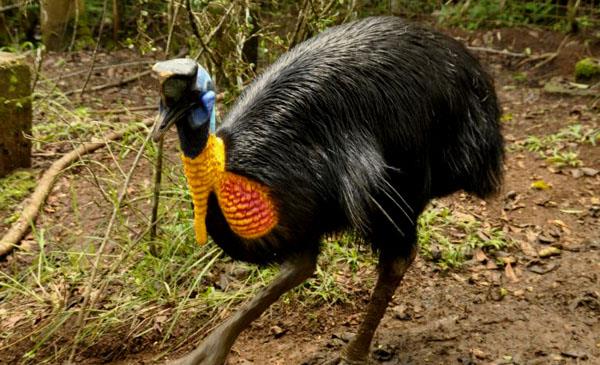 善奔走、不能飛、性好斗,是巴布亞新幾內(nèi)亞最大的脊椎動物之一,因有單肉垂而得名。具有質(zhì)地粗糙而光澤的羽毛,成鳥的頭頂有一個類似頭盔的角質(zhì)冠。最引人注目的特征是臉頰至脖頸具有裸露明亮的藍色、黃色皮膚。