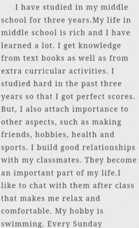 我們學(xué)校的生活是非常豐富多彩的。有4點(diǎn)到5點(diǎn),每天下午的活動(dòng)很多。我們可以玩籃球,足球和其他體育比賽在星期一和星期三。