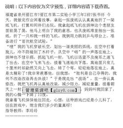 我看著這一架我好不容易完成的紙飛機,心里即開心又舍不得.接下來就是飛飛機了,我滿懷信心,對這飛機使勁地一吹,仿佛在給它充上力量.把那飛機向天空拋去,這時,我仿佛也變成飛機,在空中翱翔……